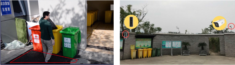 在垃圾投放点部署智能警戒摄像机,识别有人进入区域后,可触发智慧音柱进行语音提醒,“你好,垃圾请分类入桶,餐厨垃圾扔绿桶,其他垃圾扔黄桶。垃圾也有家,各自回各家”。通过语音的方式,对投放垃圾的业主进行提醒,减少物业提醒和监督成本。